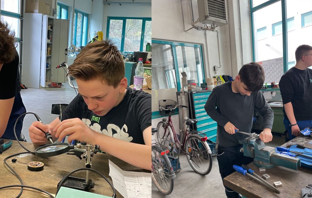 In the electrical department, the students were able to demonstrate their skills by soldering a tea light themselves. In the mechanics department, they worked diligently to create a perfect Rubik's cube. In the production area, the students had the opportunity to make their own paper, and in the warehouse and logistics area, they received, checked, and stored deliveries, among other things.