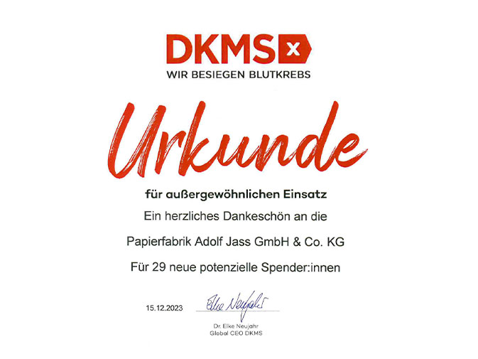 Podczas tradycyjnego przyjęcia noworocznego Izba Przemysłowo-Handlowa (IHK) powitała w Orangerie Fulda ponad 500 gości ze świata polityki i gospodarki. Firma Jass otrzymała od IHK Fulda prestiżowy złoty certyfikat „Gesund arbeiten in FD” (Zdrowe miejsce pracy w FD).