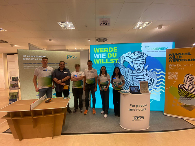 Staż zamiast nudy podczas jesiennych ferii? Fabryka papieru Jass, jako jeden z największych i najbardziej renomowanych pracodawców w regionie, ma kilka argumentów przemawiających za tym rozwiązaniem – oraz podejście, które oferuje ekscytującą i pouczającą orientację zawodową. W ciągu pięciu dni poznasz pięć obszarów działalności przemysłu papierniczego wraz z odpowiednimi zawodami technicznymi i handlowymi, pod intensywną opieką w małych grupach.