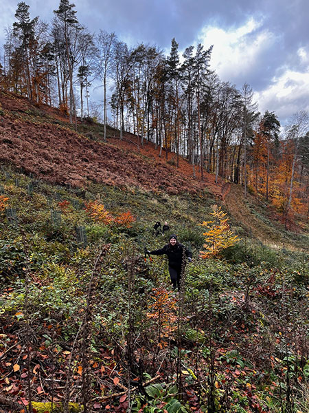 14 listopada 2023 r. nasi praktykanci wraz z leśniczym Maikiem Meißnerem pomagali w przebudowie lasu w Oberkrossen. Młode drzewa musiały zostać oczyszczone z różnych roślin, takich jak krzewy jeżynowe i paprocie, aby ponownie uzyskać wystarczającą ilość światła i miejsca do wzrostu. Po zakończeniu pracy pozostało jeszcze wystarczająco dużo czasu na grilla i zajęcia zespołowe. Cieszymy się, że dzięki temu zaangażowaniu mogliśmy wnieść niewielki, ale trwały wkład w ekosystem lasu. Kontynuacja tej współpracy jest już zaplanowana na przyszły rok.